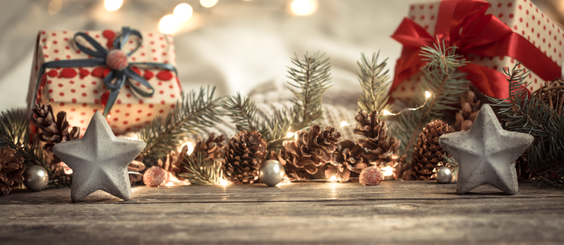 Si quieres que tu navidad tenga elegancia y brillo, este color es ideal para tu decoración; combina muy bien con tonos blancos y plateados, puedes utilizarlo en elementos como cintas, luces o figuras de madera y acompañarlo de una guirnalda verde para que resalte la luminosidad.